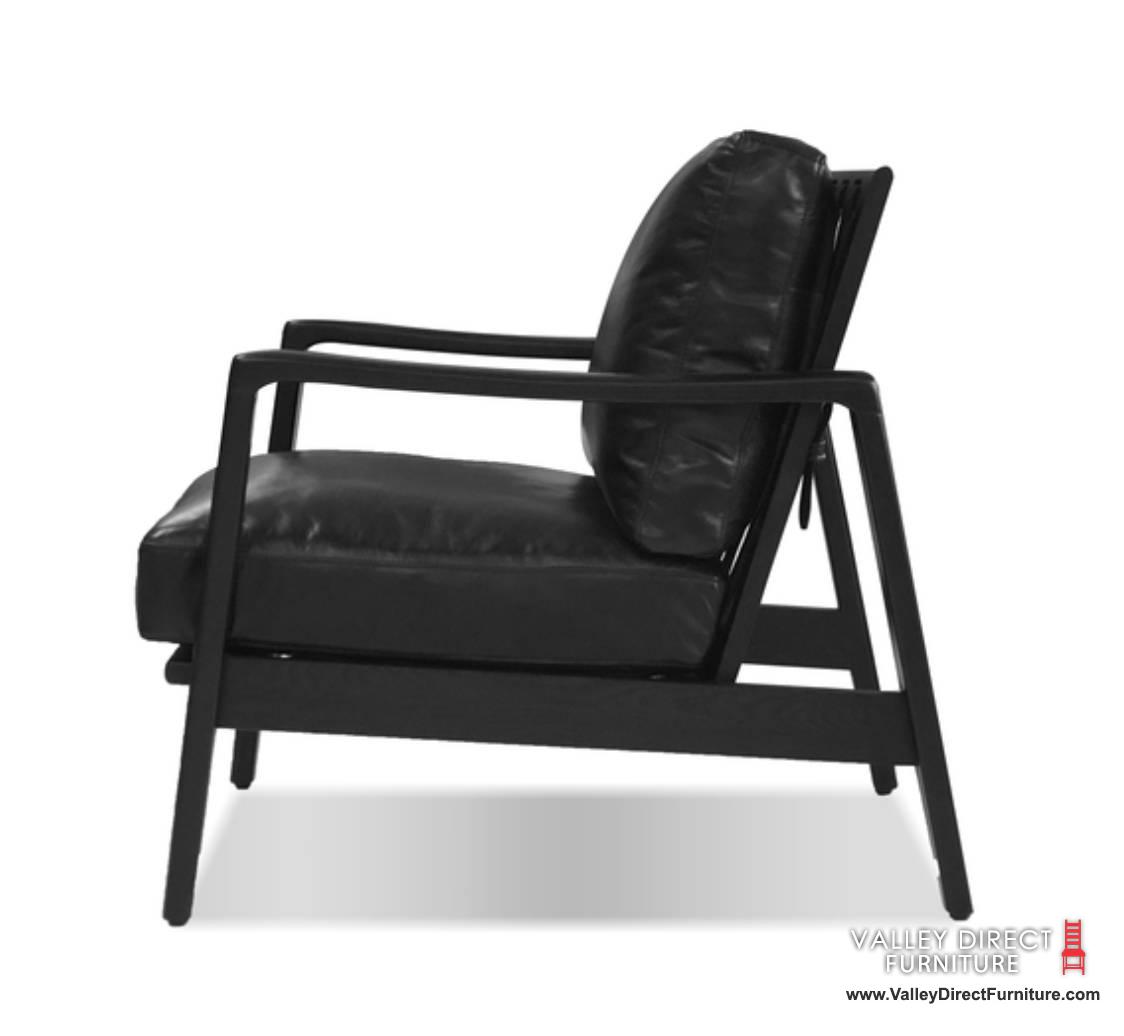 The Craftsman chair is made from a solid ashwood frame and upholstered in top grain leathers. It features a unique back cushion support made from Straps and bronzed buckles. Choose from black stained ash frame with black leather or light walnut stained ash from with balck or tan leather.